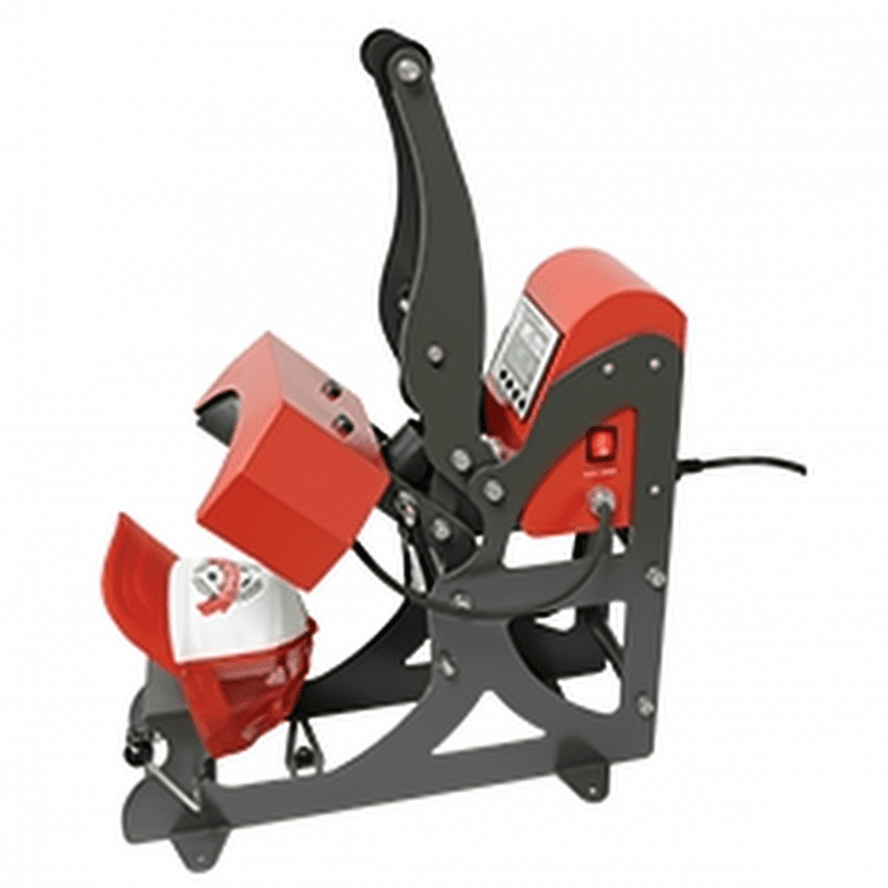 En primer lugar, se requiere de una plancha para gorras de apertura tipo caimán, la cual te va ayudar a obtener buenos resultados al momento de sublimar tus jockeys. Esta plancha tiene una mejor facilidad de uso porque tienes la necesidad de estar girando y no te va a mover el papel al momento de que tengas que cerrarla. La máquina viene con un agarradero en la parte de abajo para estirar el jockey y quede totalmente plana y así tu impresión no se arrugue ni queden líneas en tu jockey.