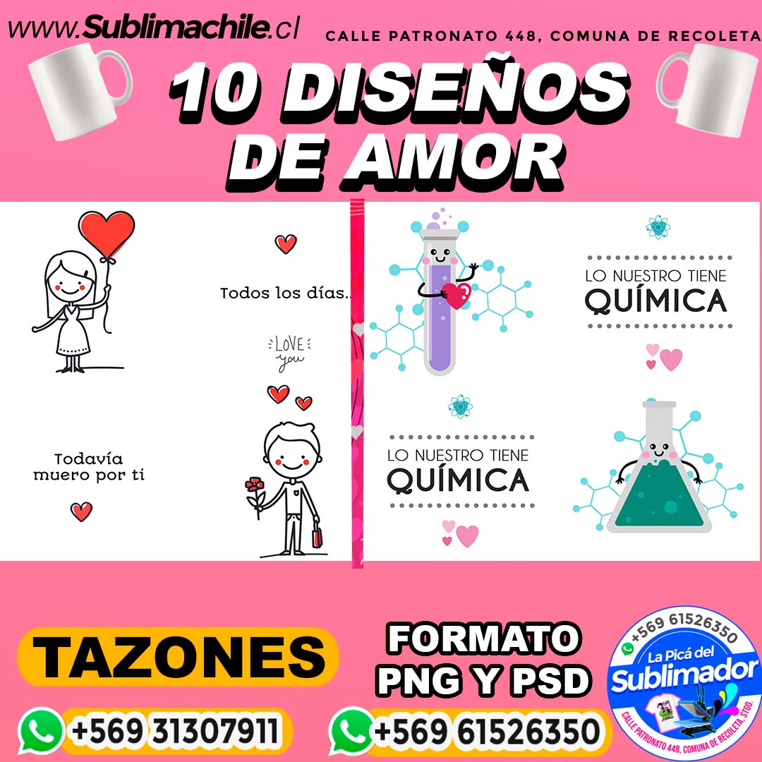 10 Diseños de Amor para Sublimar en Tazones Editables – PNG y PSD