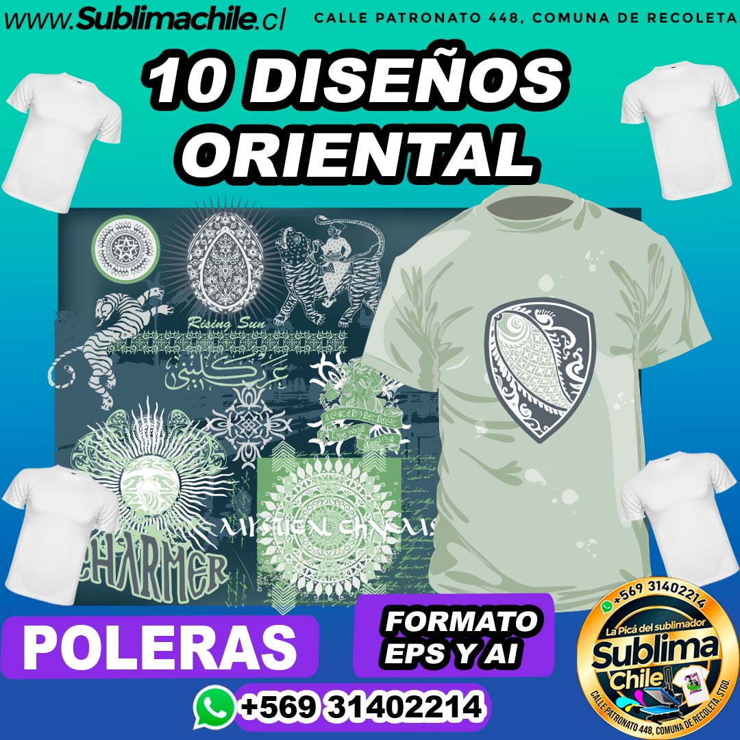 10 Diseños Orientales para Sublimar en Poleras – EPS y AI