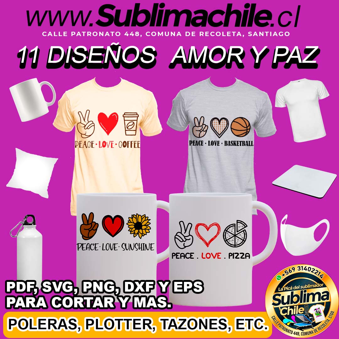 11 Diseños de Amor y Paz para Sublimar Editables – DXF, PNG, PDF, SVG y EPS
