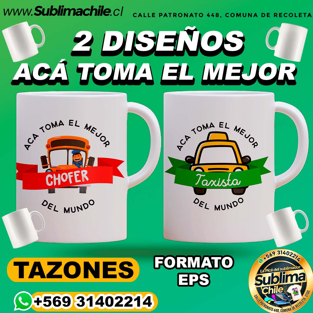 2 Diseños «Acá toma el mejor» Editables para Sublimar Tazones – EPS