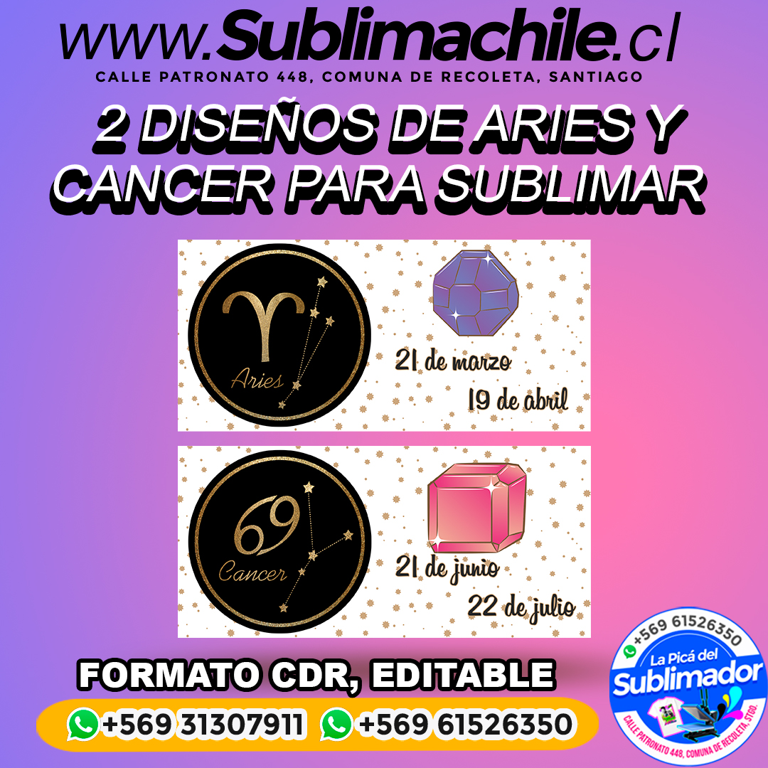 Dos hermosos diseños de aries y cancer para sublimar tazones.