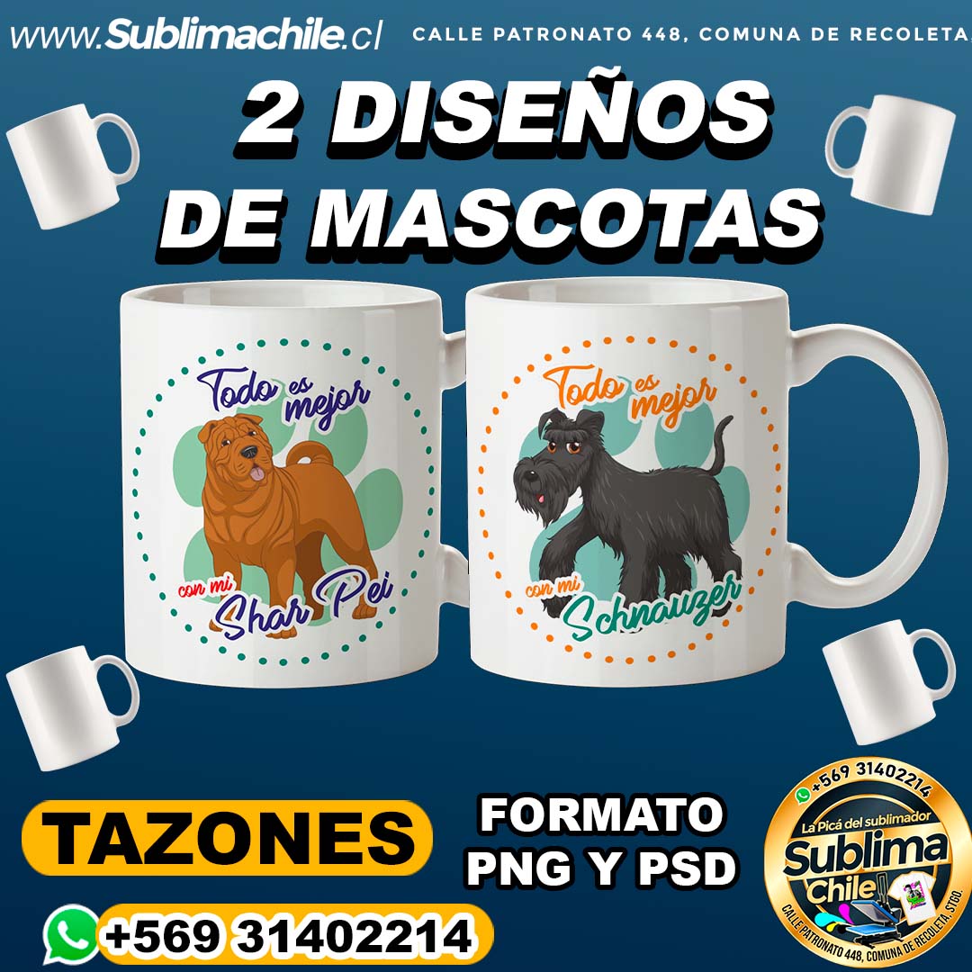 2 Diseños de Perros para Sublimar en Tazones Editables – PSD Y PNG