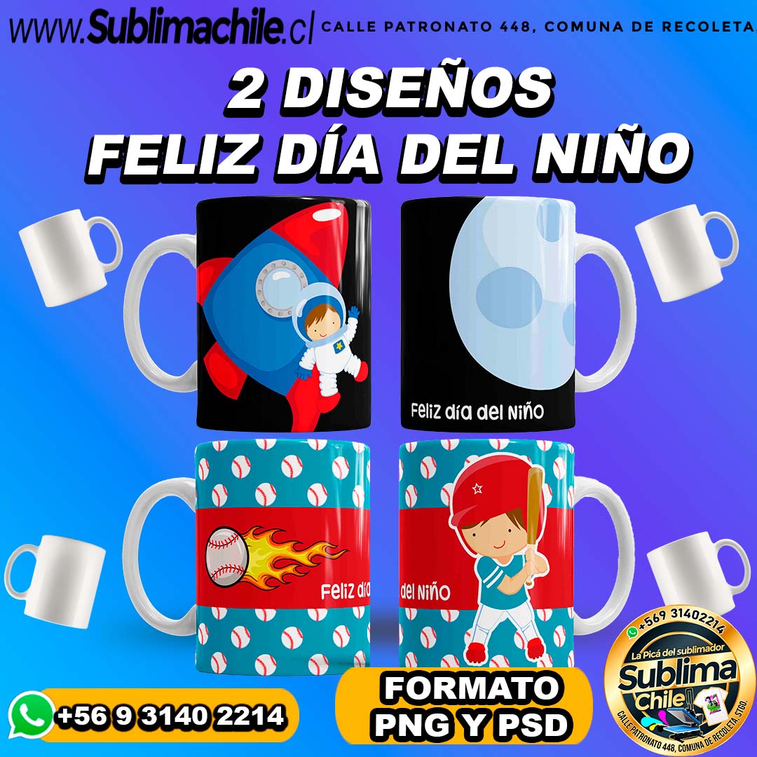 2 Diseños Día del Niño para Sublimar Tazones Editables – PSD y PNG