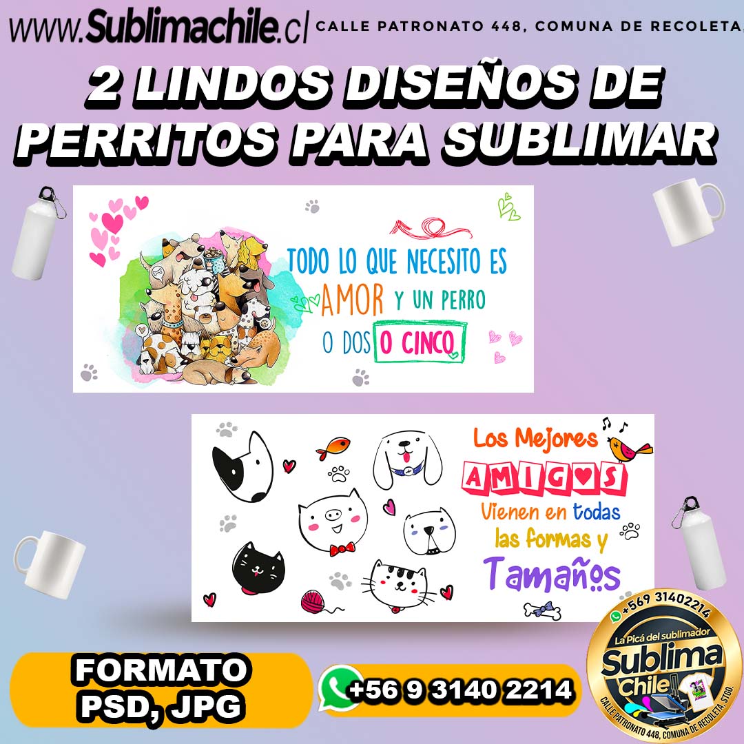 2 Diseños editables en PSD de perritos, para sublimar tazones.