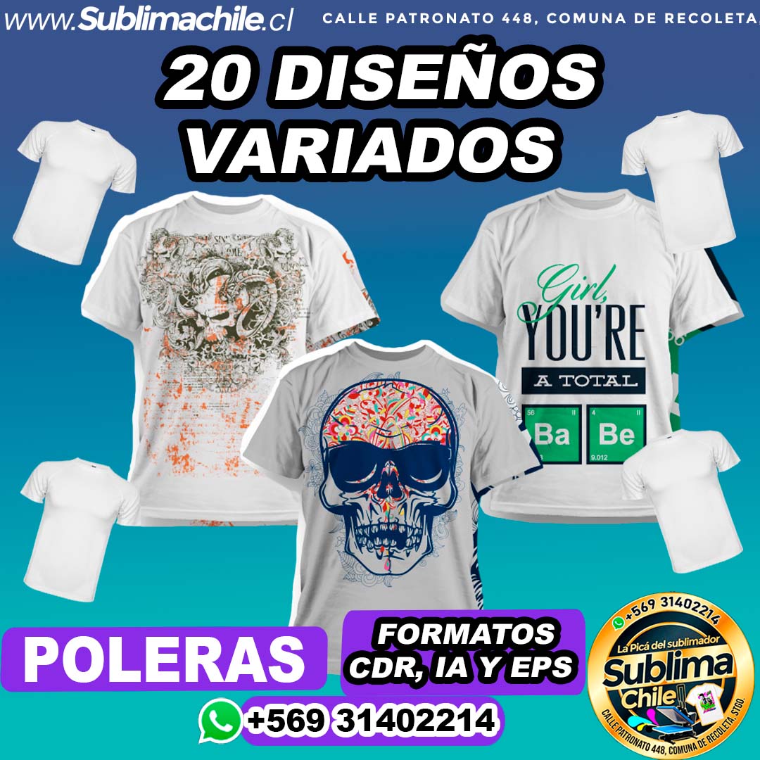 20 Diseños Variados para Sublimar en Poleras Editables – AI, CDR y EPS