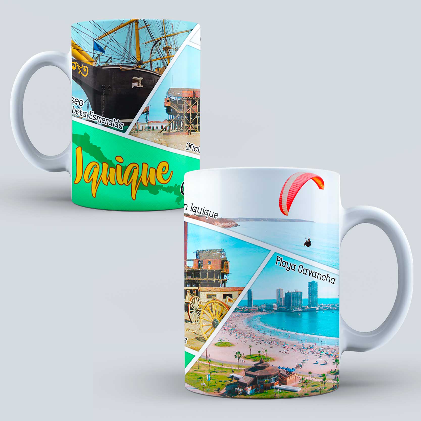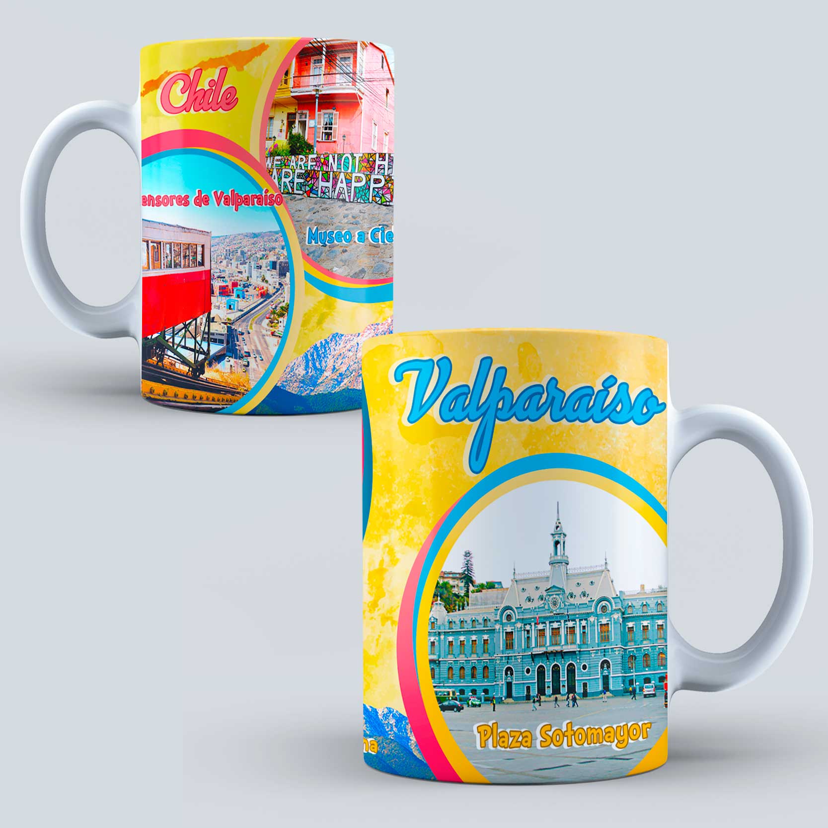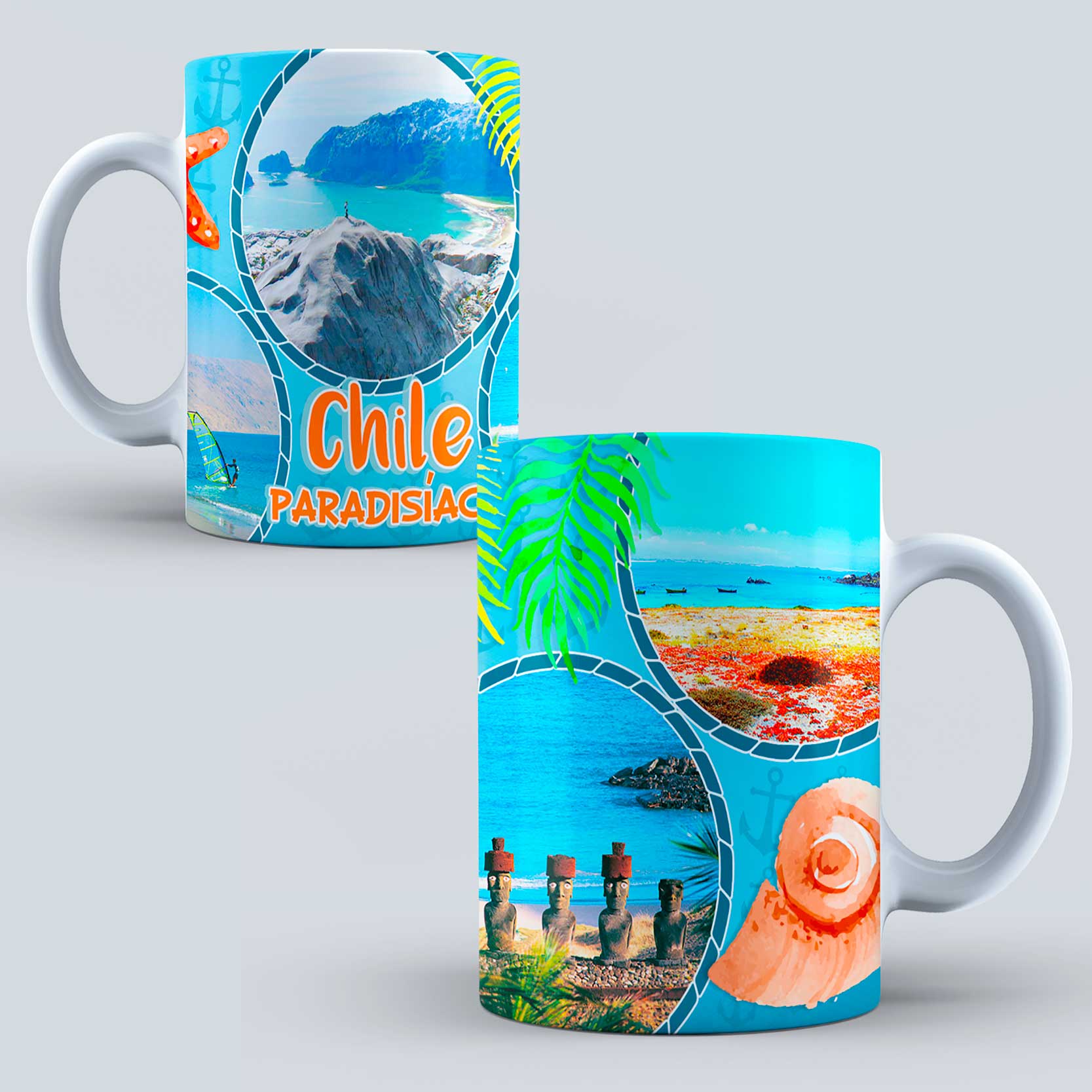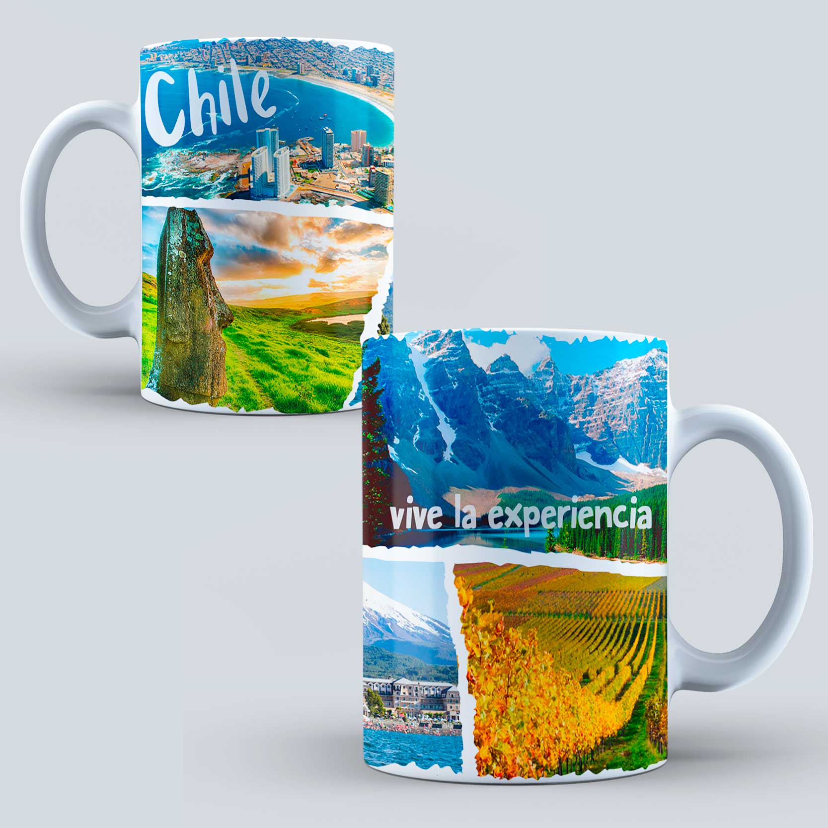 30 Diseños de lugares Turisticos Chile para Tazones – Editable PSD, PNG – Incluye fuentes