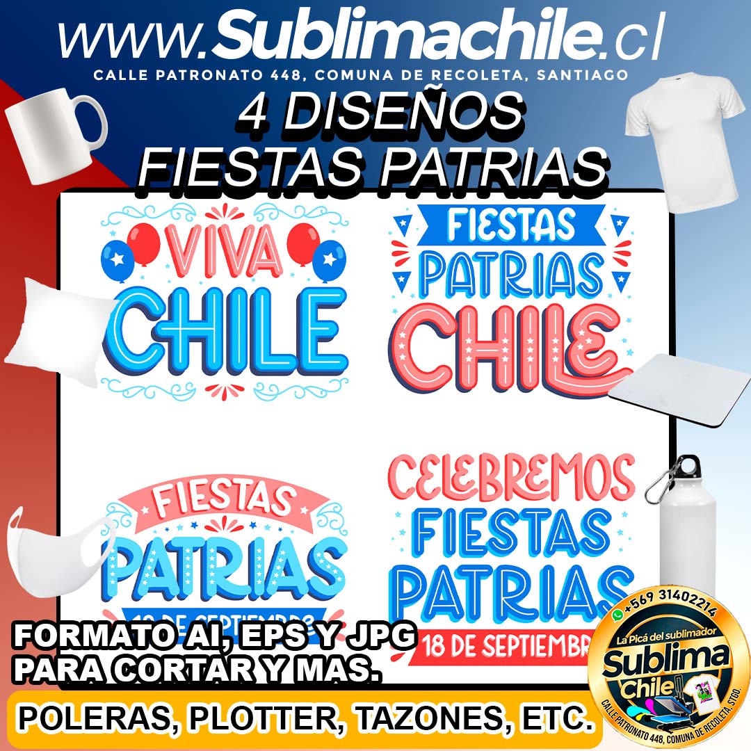 4 Diseños Fiestas Patrias para Sublimar – AI, EPS y JPG