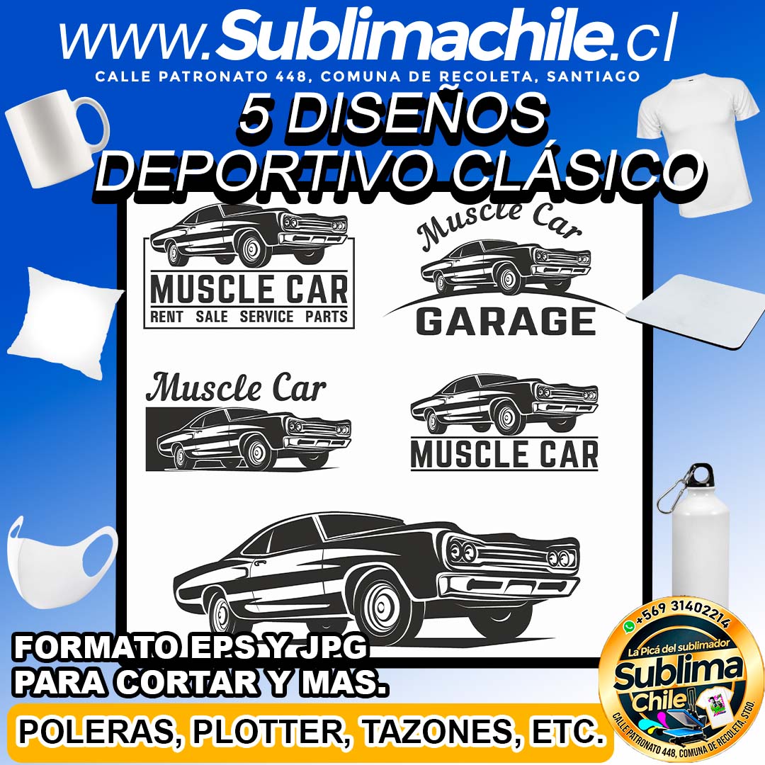 5 Diseños de un Deportivo Clásico para Sublimar editable CDR – EPS y JPG