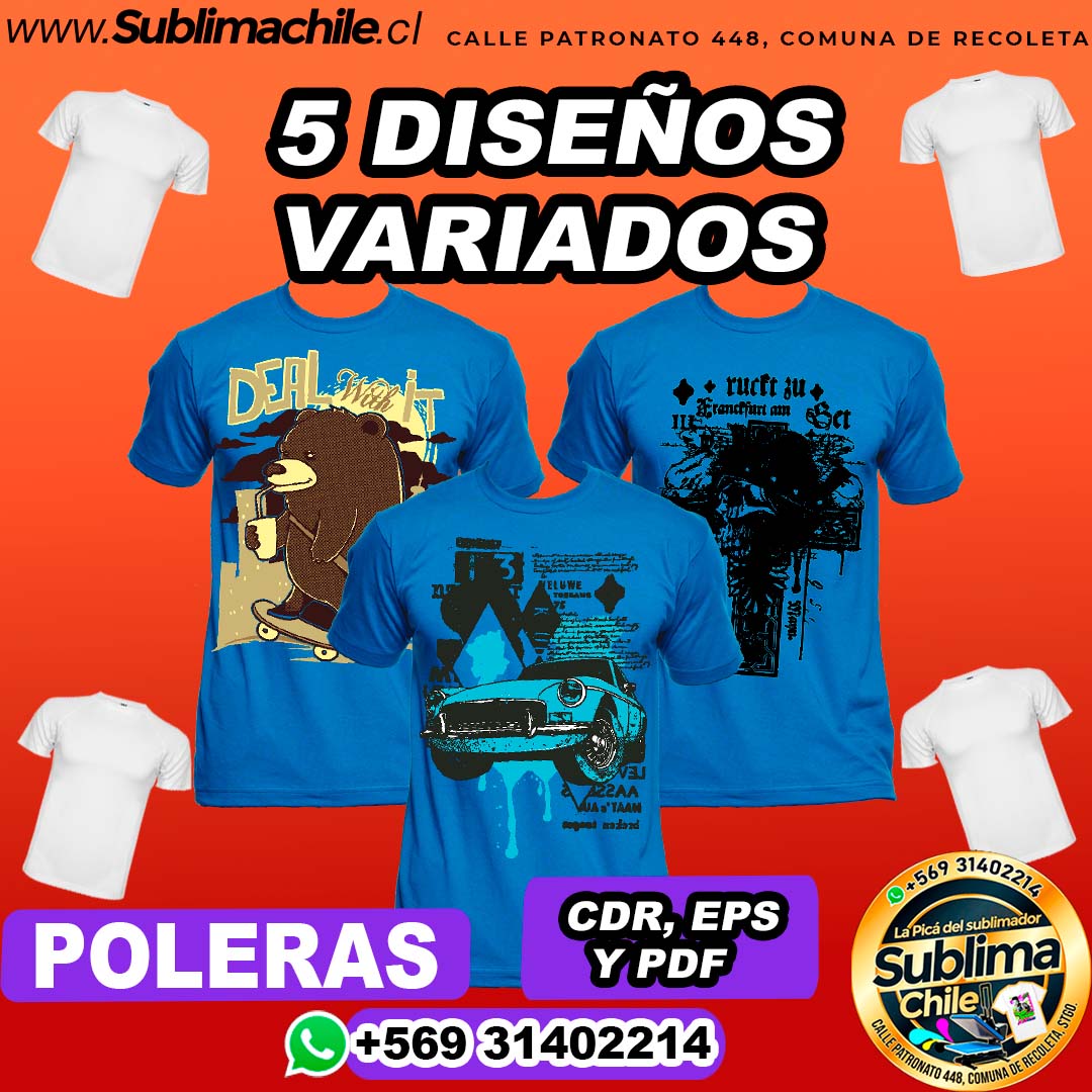 5 Diseños Variados parta Sublimar en Poleras Editable – PSD, CDR y EPS