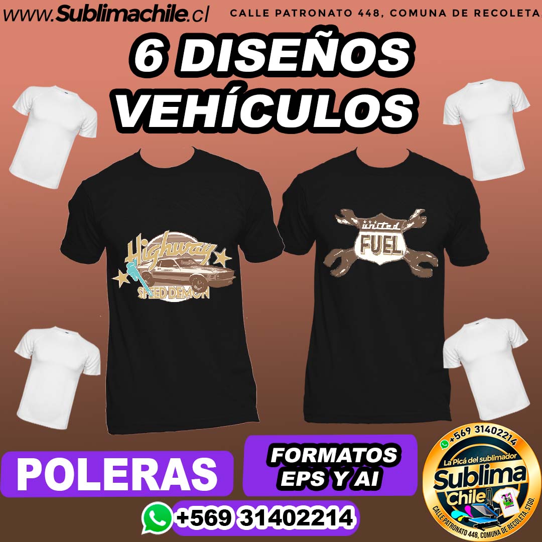 6 Diseños de Vehículos para Sublimar en Poleras – EPS y AI