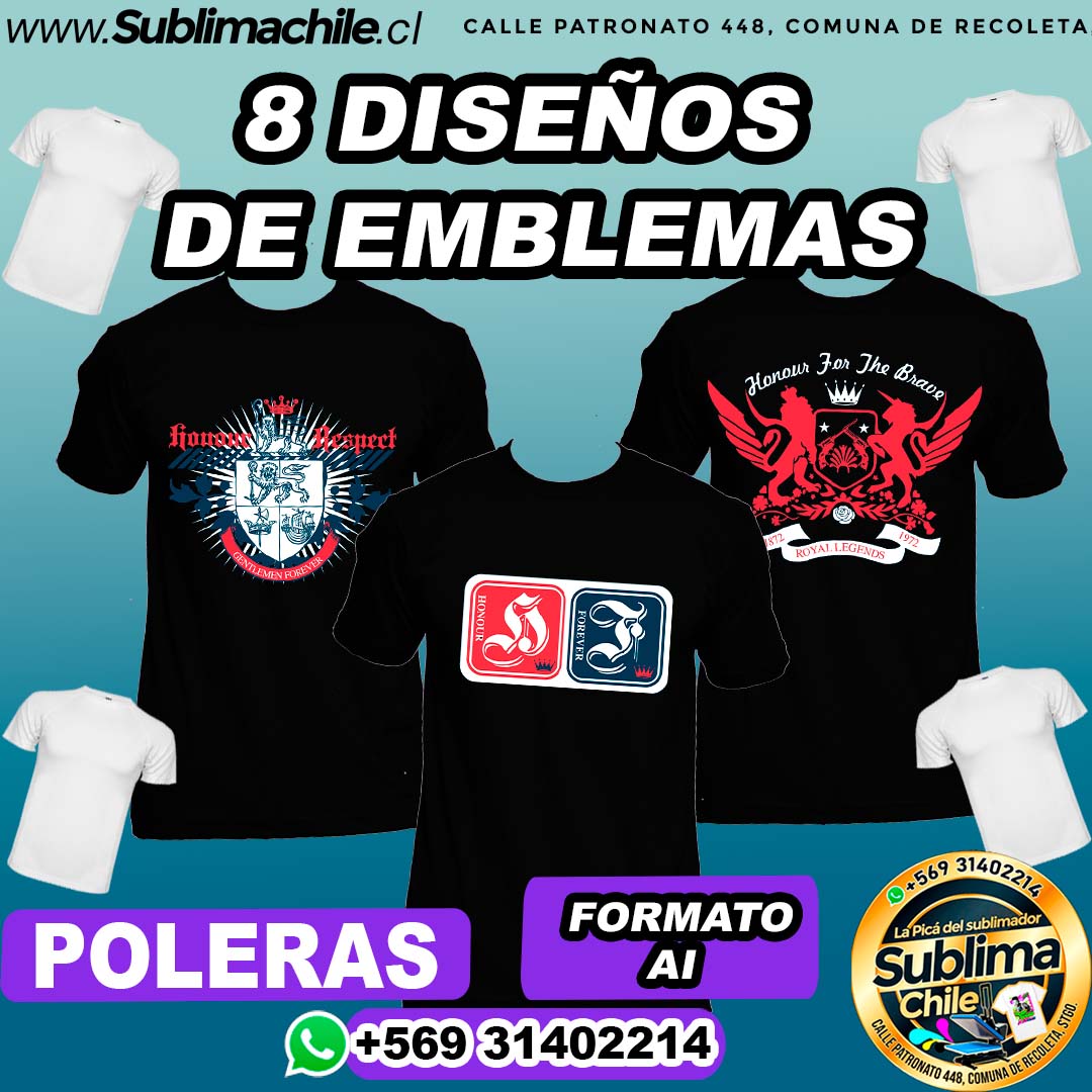 8 Diseños de Emblemas para Sublimar en Poleras – AI