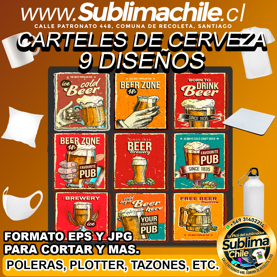9 Diseños de Carteles de Cervezas para Sublimar – JPG y EPS