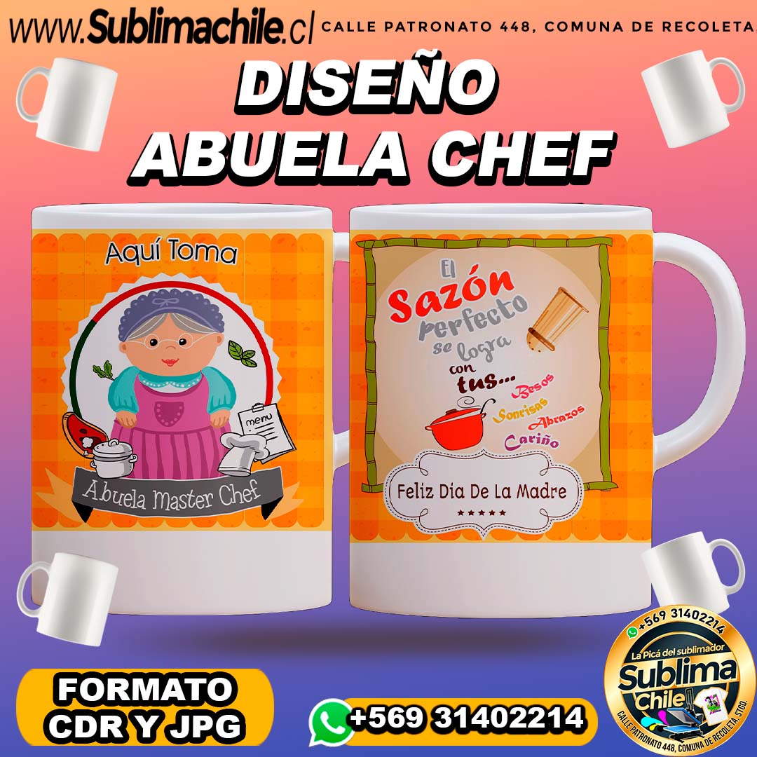 Diseño Abuela Chef para Sublimar Tazones Editables – CDR y JPG