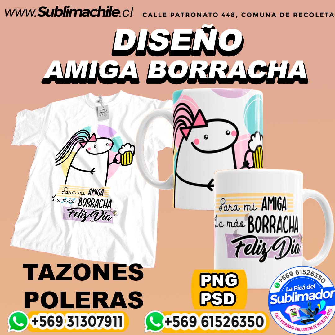 Diseño Amiga Borracha para Sublimar en Poleras y Tazones Editables – PSD y PNG
