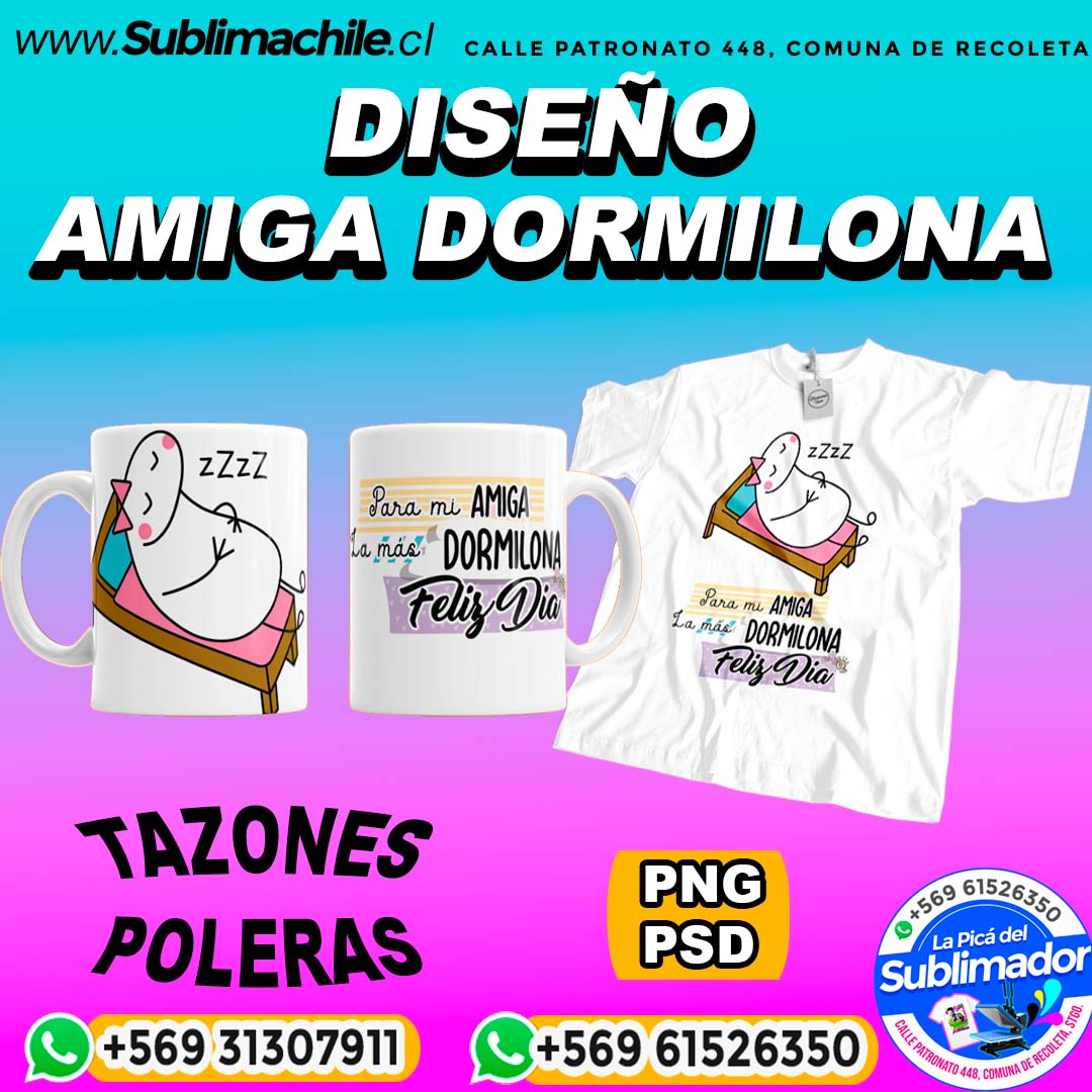 Diseño Amiga Dormilona para Sublimar en Poleras y Tazones Editables – PSD y PNG
