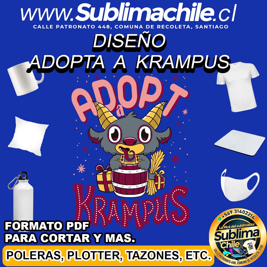 Diseño de Adopta a Krampus para Sublimar – PDF Editable en CDR