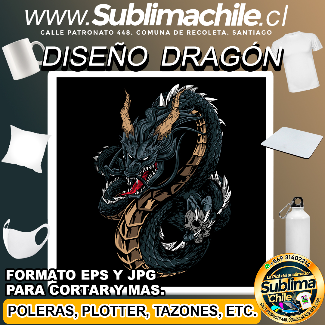 Diseño de un dragón tenebroso para sublimar lo que desees.