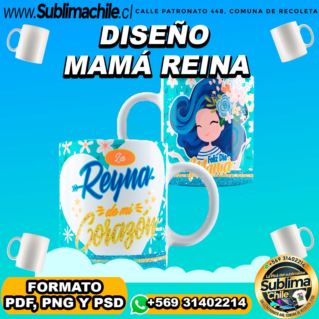 Diseño de Mamá Reina para Sublimar en Tazones Editables – PNG, PSD y PDF