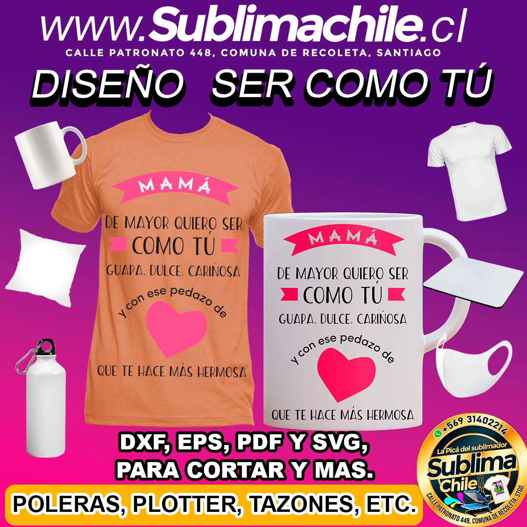 Diseño de Quiero ser como Tú para Sublimar – DXF, EPS, PDF y SVG