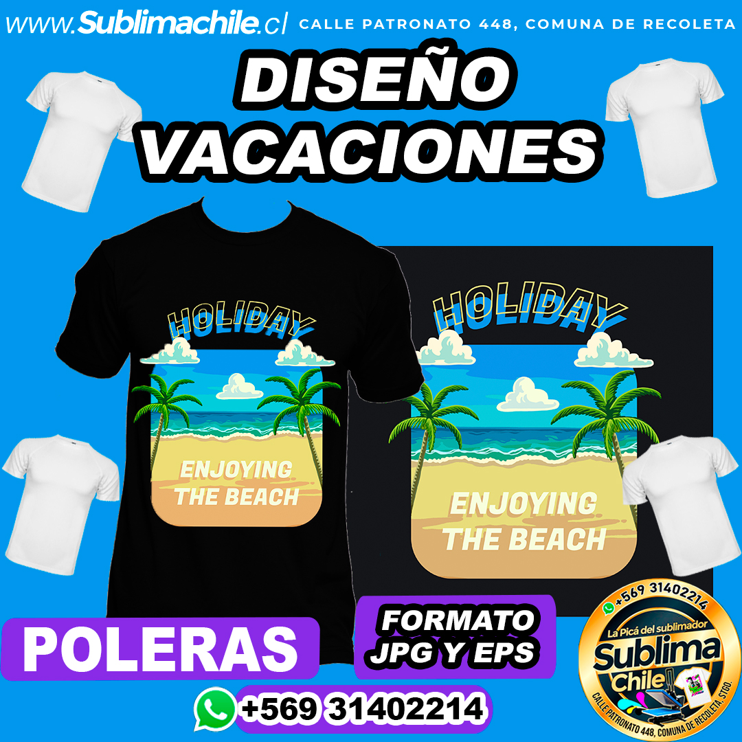 Diseño de Vacaciones para Sublimar Poleras – JPG y EPS