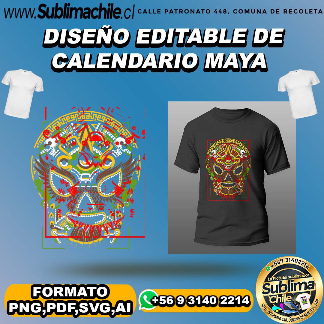 Diseño editable de calendario maya para sublimar poleras – PNG,SVG,PDF,AI