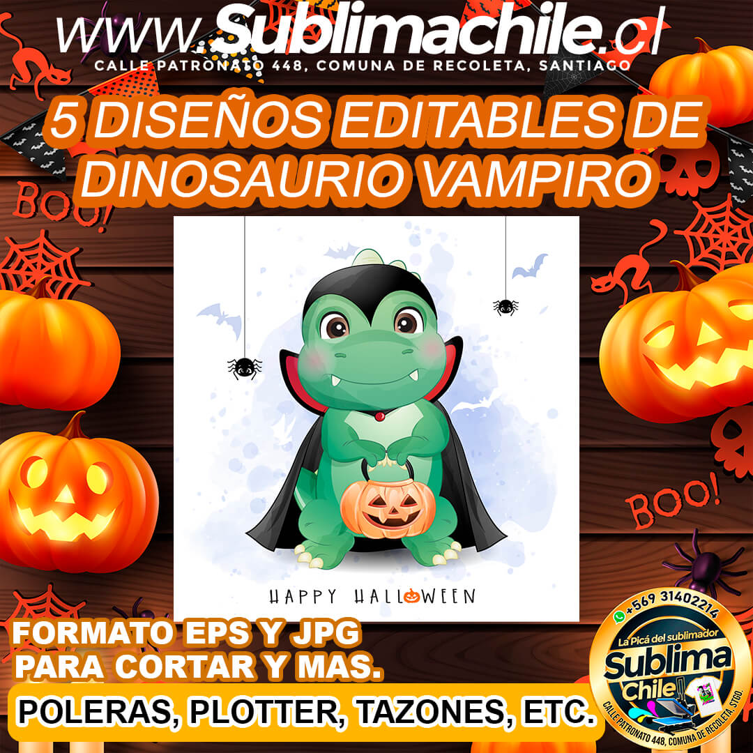 Diseño editable de dinosaurio vampiro para sublimar – EPS, JPG