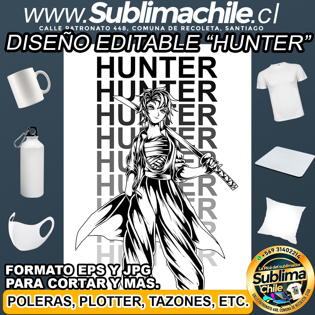 Un diseño editable en CDR de "hunter" estilo anime, para sublimar.