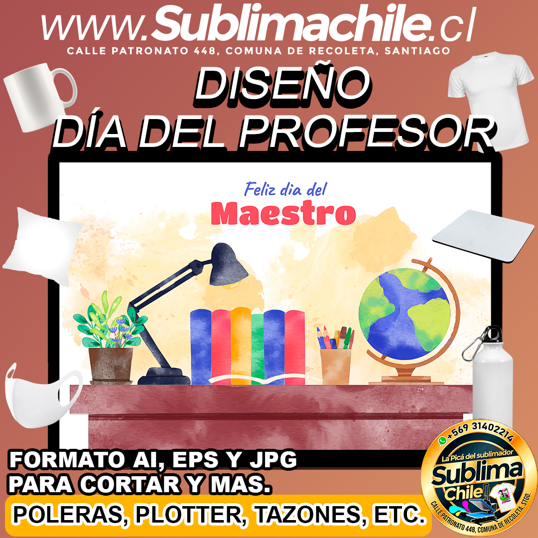 Diseño Editable Feliz Día del Maestro para Sublimar – AI, EPS y JPG