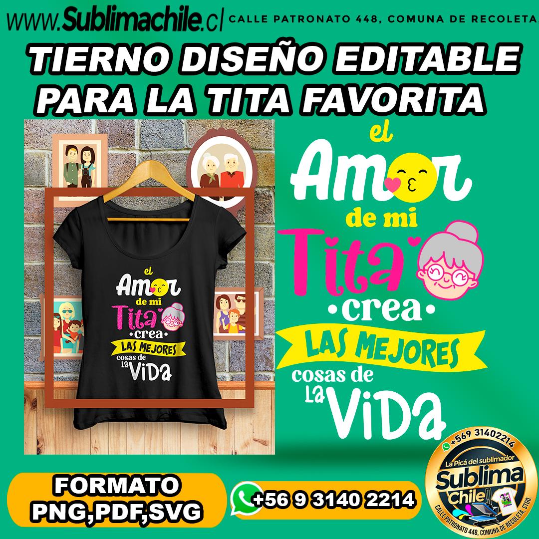 Diseño editable para la tita favorita para sublimar poleras – PNG, PDF, SVG