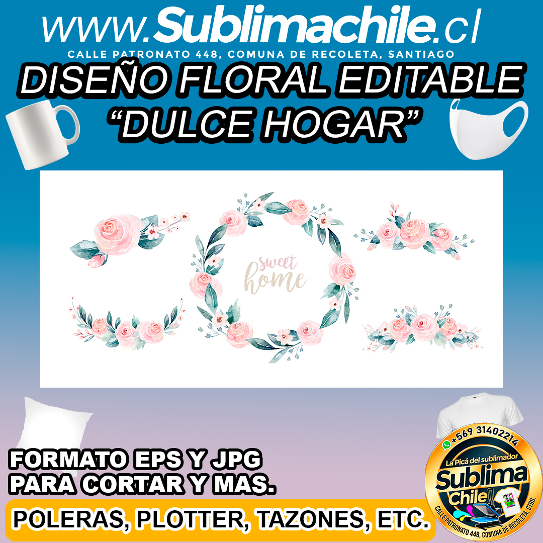 Diseño floral editable de «dulce hogar» para sublimar – EPS y JPG