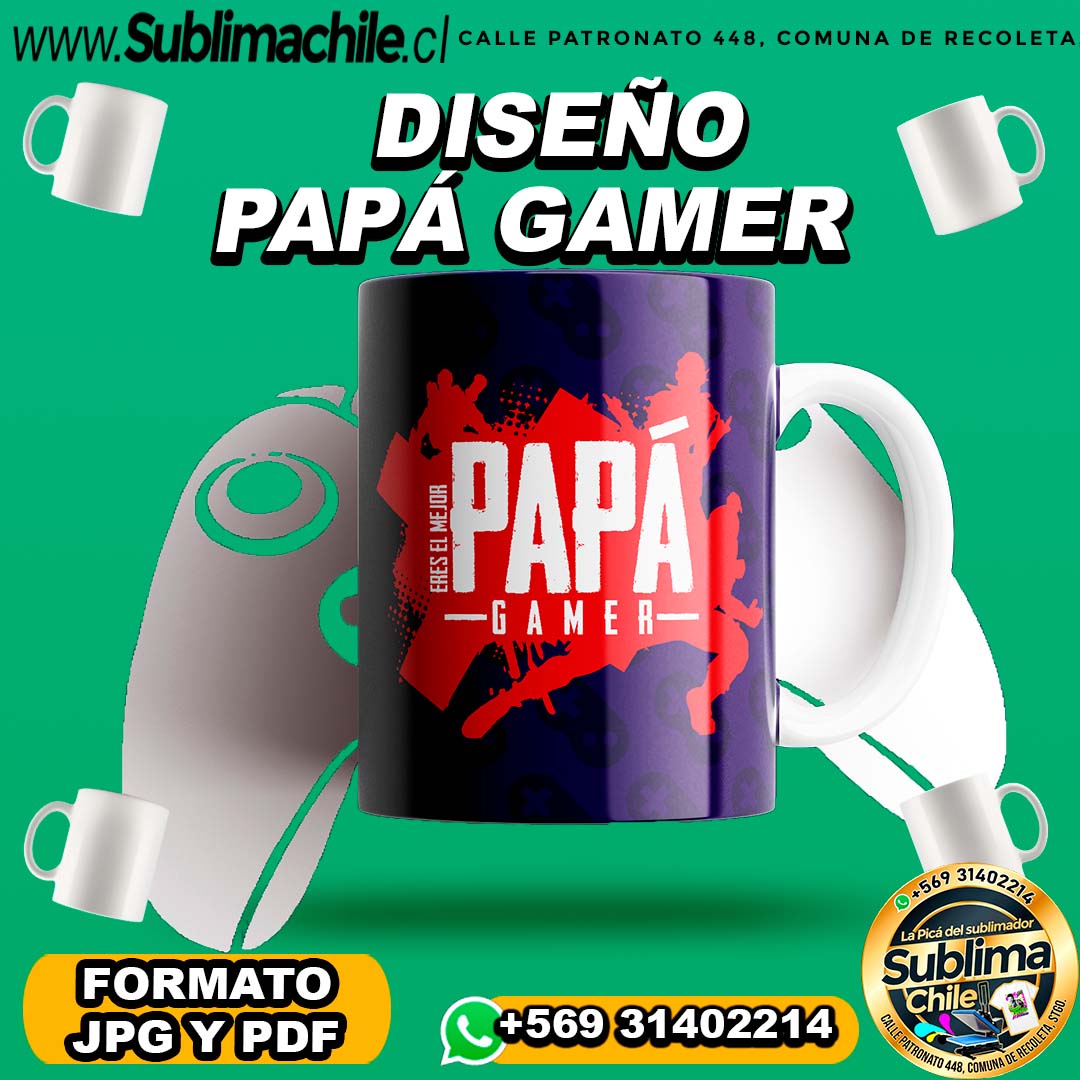 Diseño Papá Gamer para Sublimar Tazones Editable en CDR – JPG y PDF