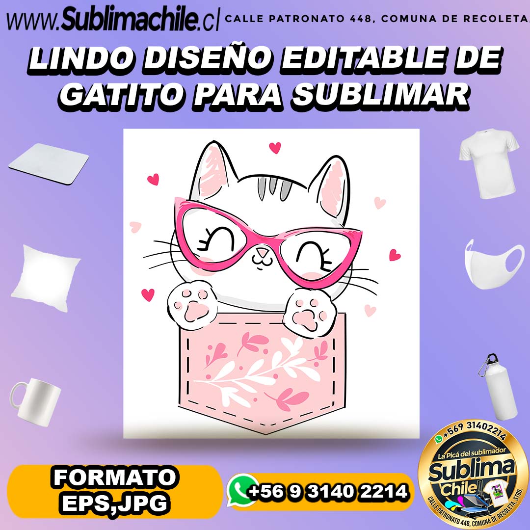 Lindo diseño editable de gatito para sublimar – EPS,JPG