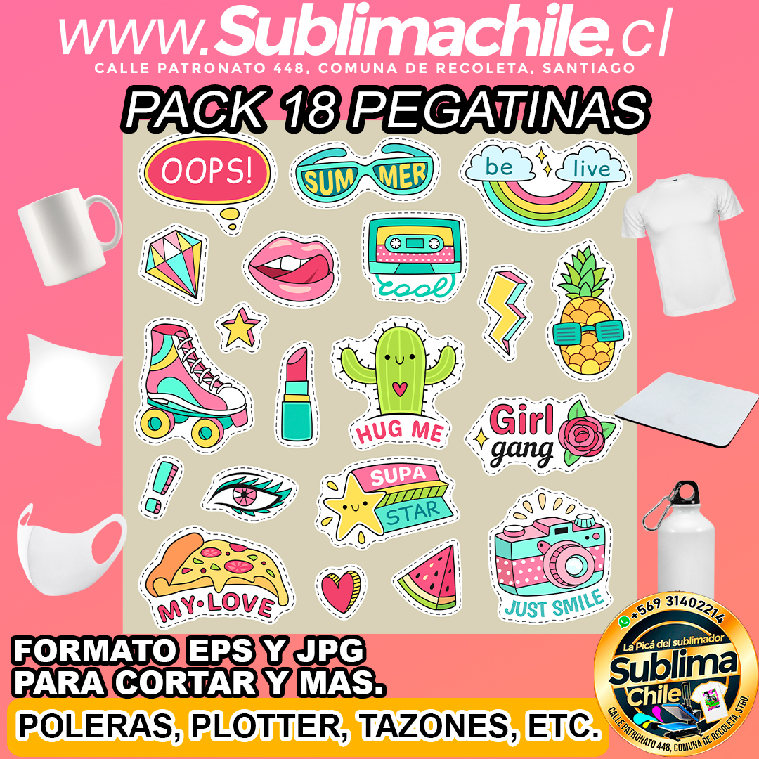 Pack 18 diseños editables de pegatinas para sublimar – JPG, EPS