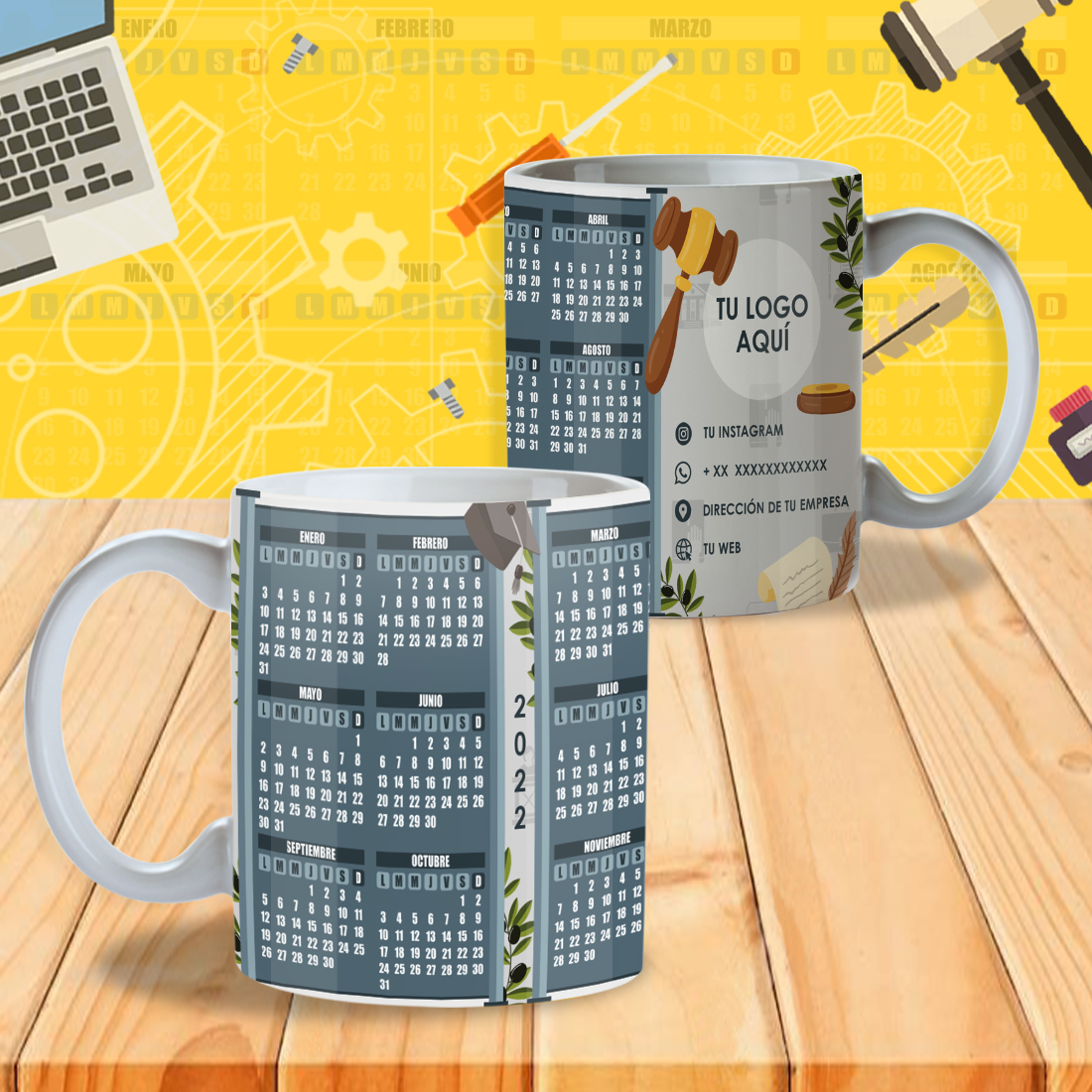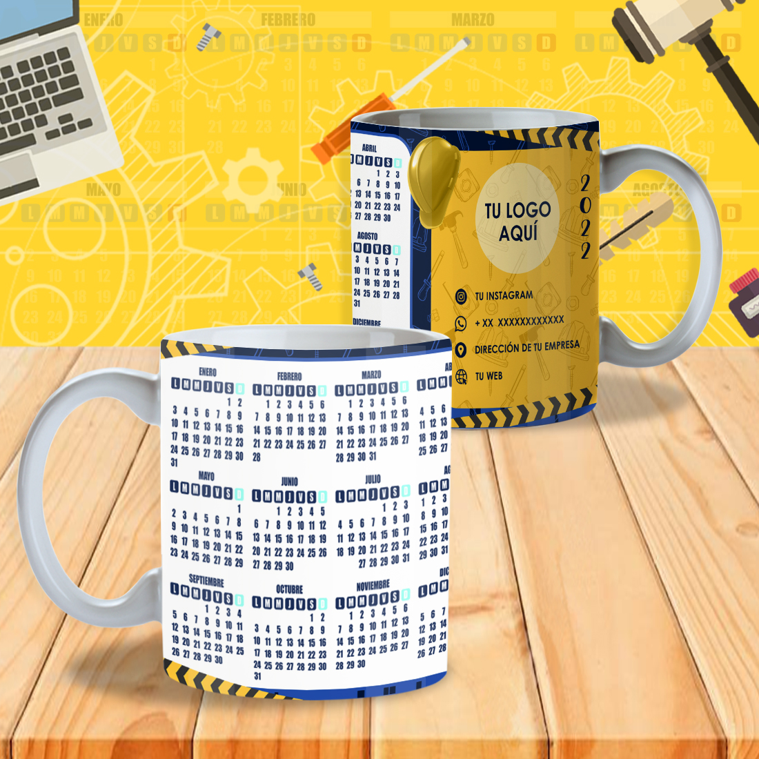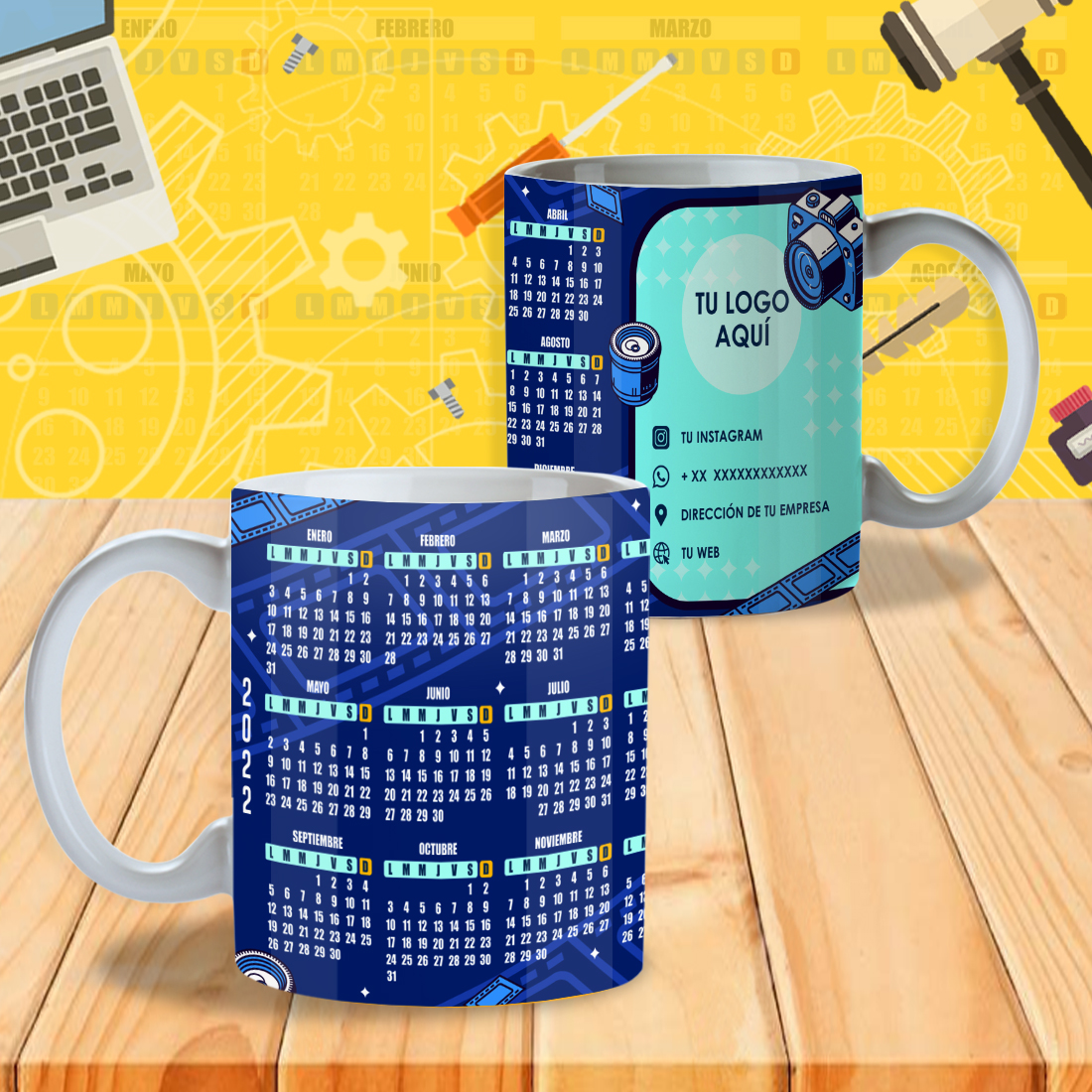 Pack 24 Diseños de Calendarios 2022 Editables para Tazones – PSD, PNG, JPG