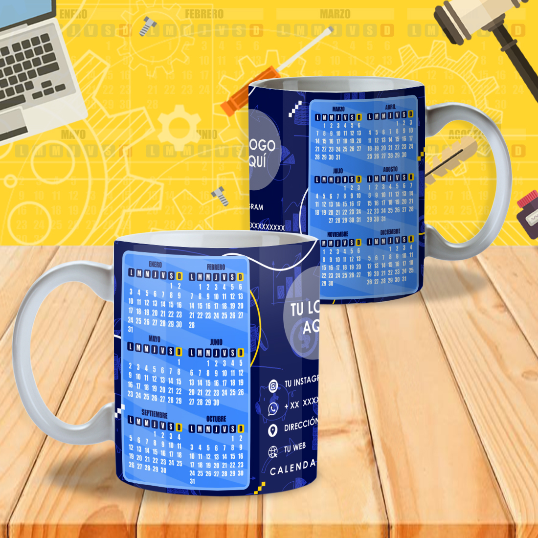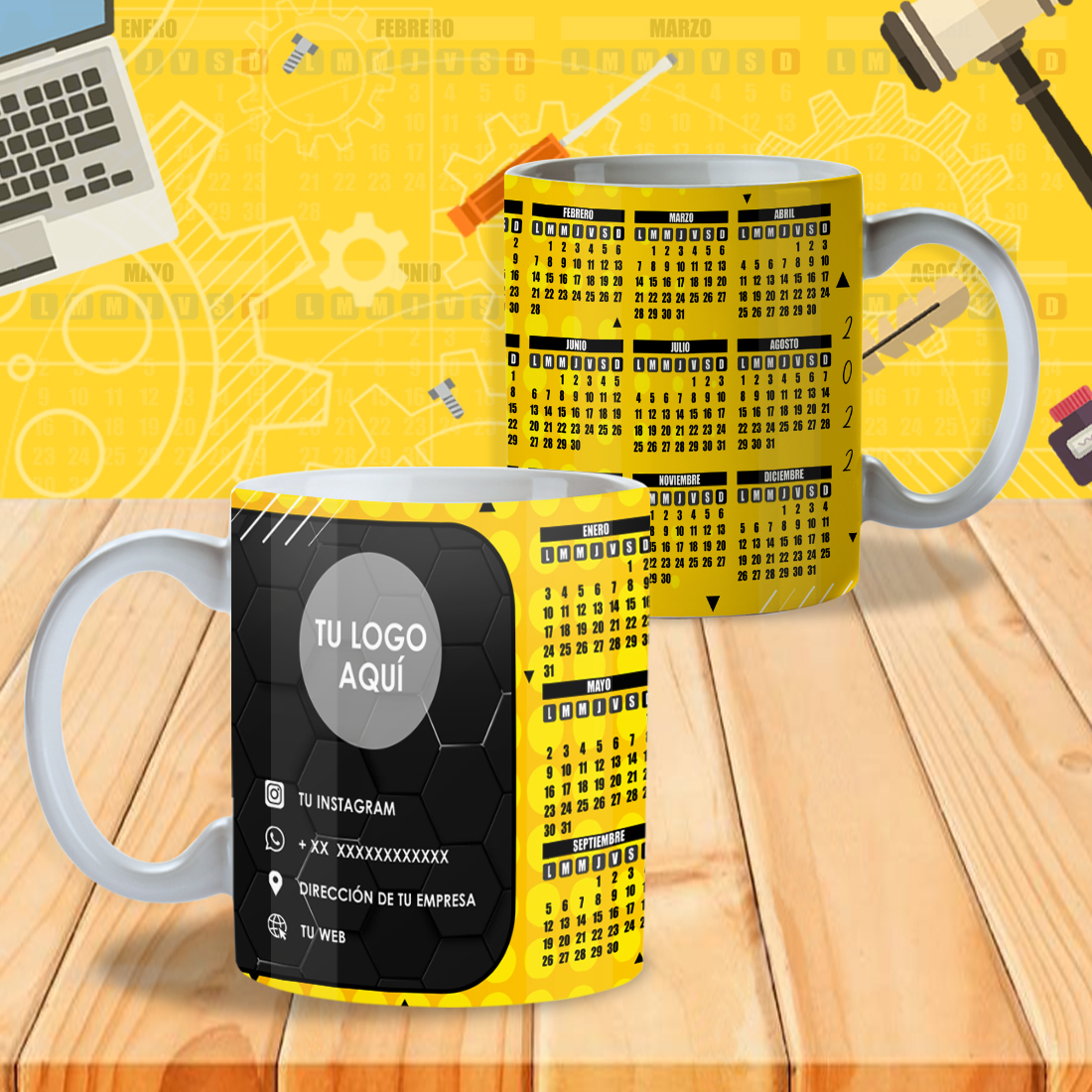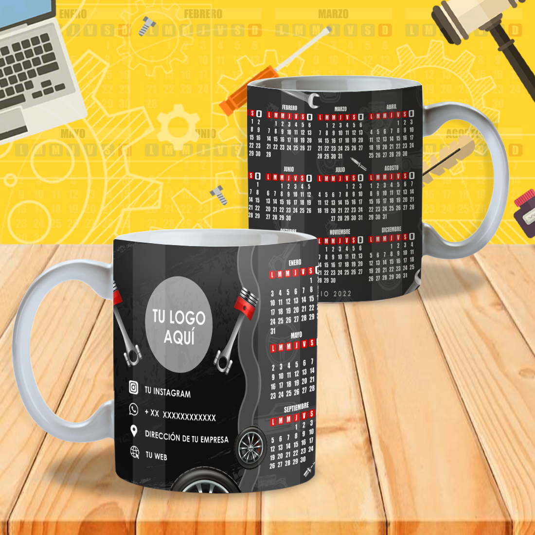 Pack 24 Diseños de Calendarios 2022 Editables para Tazones – PSD, PNG, JPG