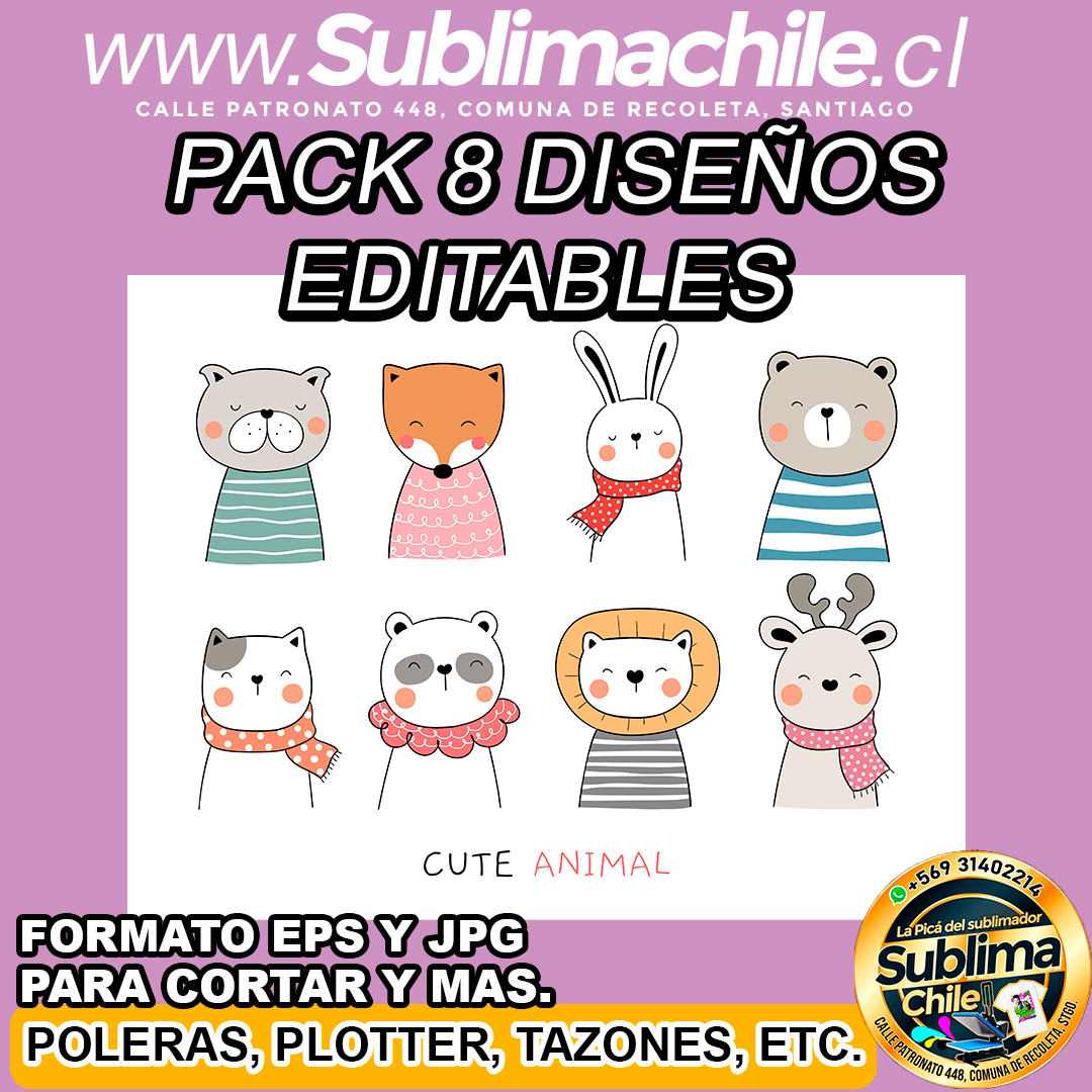 Pack 8 diseños de animales para sublimar – EPS y JPG