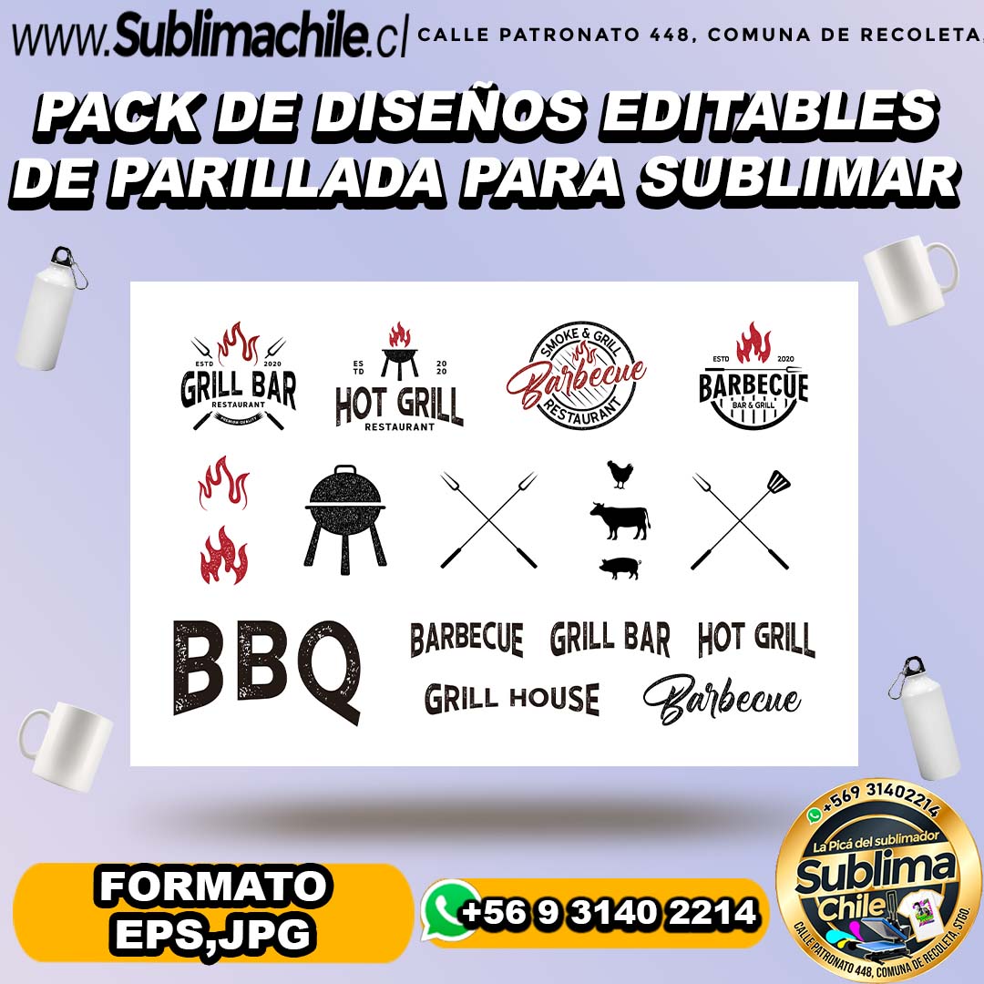 Pack de diseños editables de parrillada para sublimar – EPS,JPG