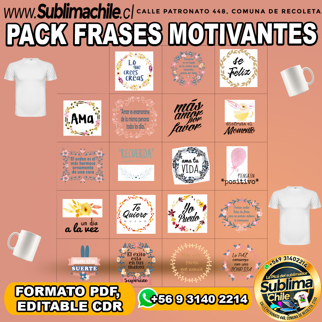 Pack de lindas frases para sublimar – PDF, CDR EDITABLE