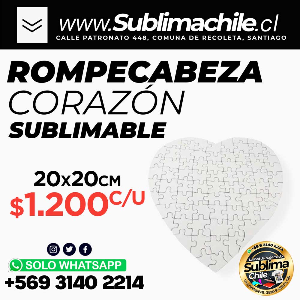 Rompecabeza Forma Corazón 20x20cm para Sublimar