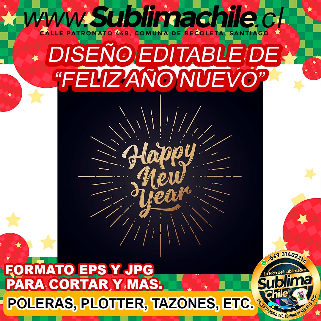 Diseño editable en CDR de feliz año nuevo, para sublimar.