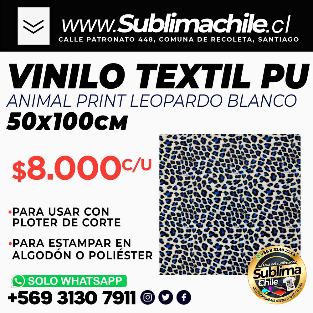 Vinilo Textil PU LEOPARDO BLANCO – AZUL. 50×100 cm.